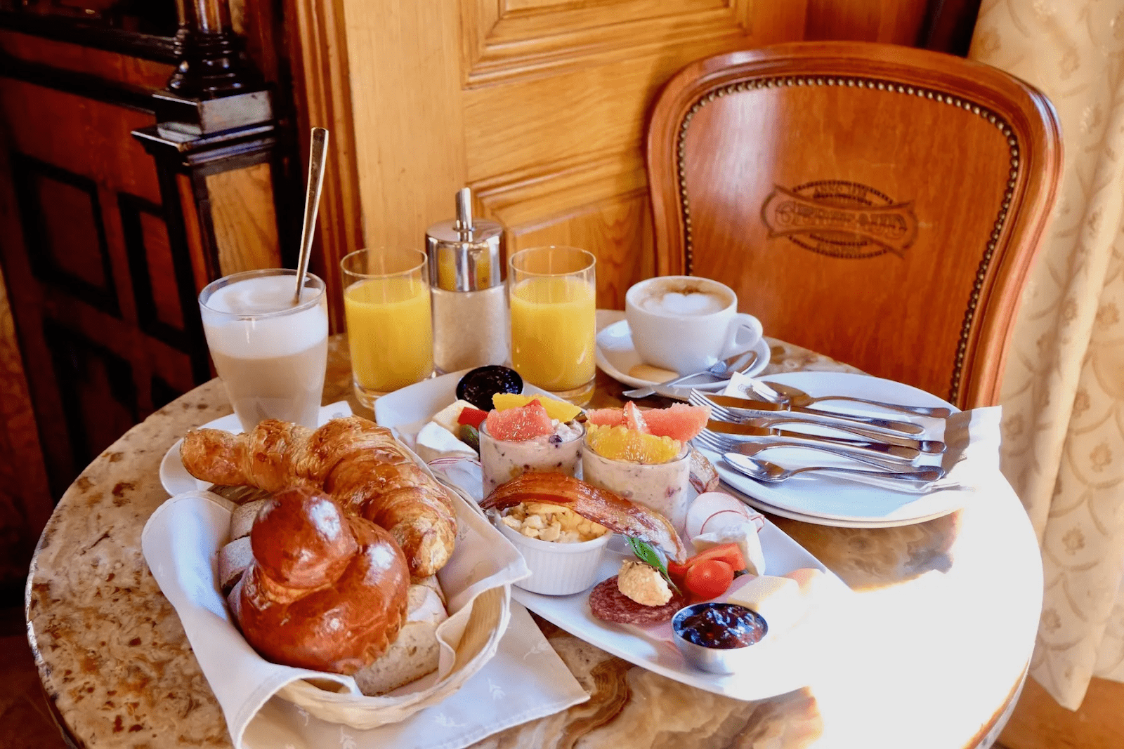 Парчеві килими та оксамитові портьєри прикрашали зал. Відвідувачі із задоволенням сідали за столи а-ля сецесіон та французького «фасону». Їх Жербо придбав у Франції.
